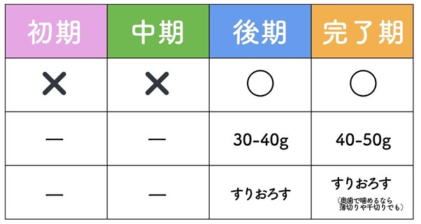 完了期以降でよく噛んで食べられる場合は、れんこんを1cm角の薄切りにして柔らかく加熱したものを与えてみるのもよいでしょう。