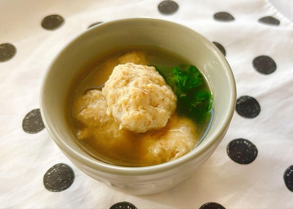 ポイント:鶏ひき肉にれんこんのすりおろしや豆腐を加えることで、ふわふわの食感になって食べやすくなります。またお肉だけで作るつみれに比べて消化にもいいので、離乳食にもぴったりです。