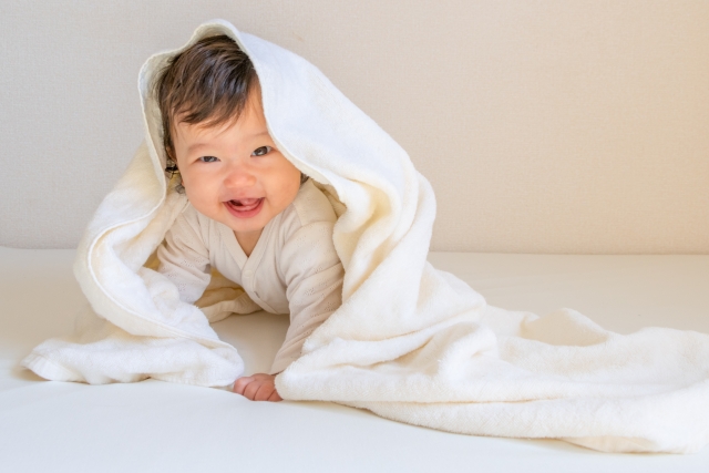たとえば、首がすわる前の赤ちゃんはバスタオルの上で手足を動かすだけでも十分な運動になります。寝返り期になれば、仰向けからうつ伏せへの動きをサポートするように、声をかけながら促してみてください。