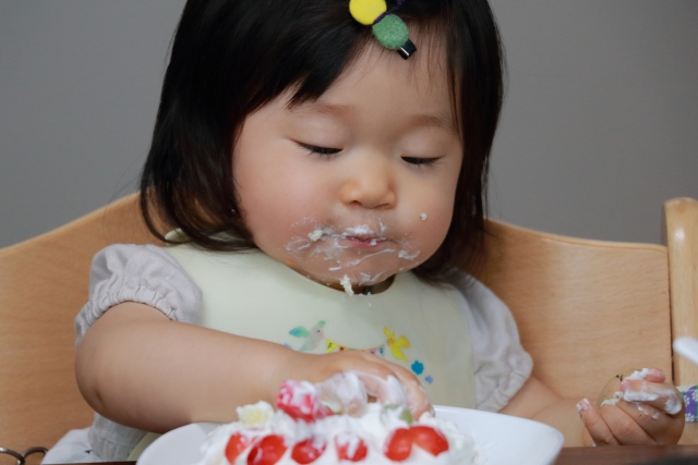 ホットケーキやパウンドケーキ、カップケーキなどのケーキ類は、生後9ヶ月ごろの離乳食後期から食べられます。赤ちゃんの消化機能が少しずつ発達し、小麦粉や乳製品などの食材にも慣れてくる時期ではありますが、甘さや油分が多いと胃腸に負担をかけやすいため注意が必要です。
